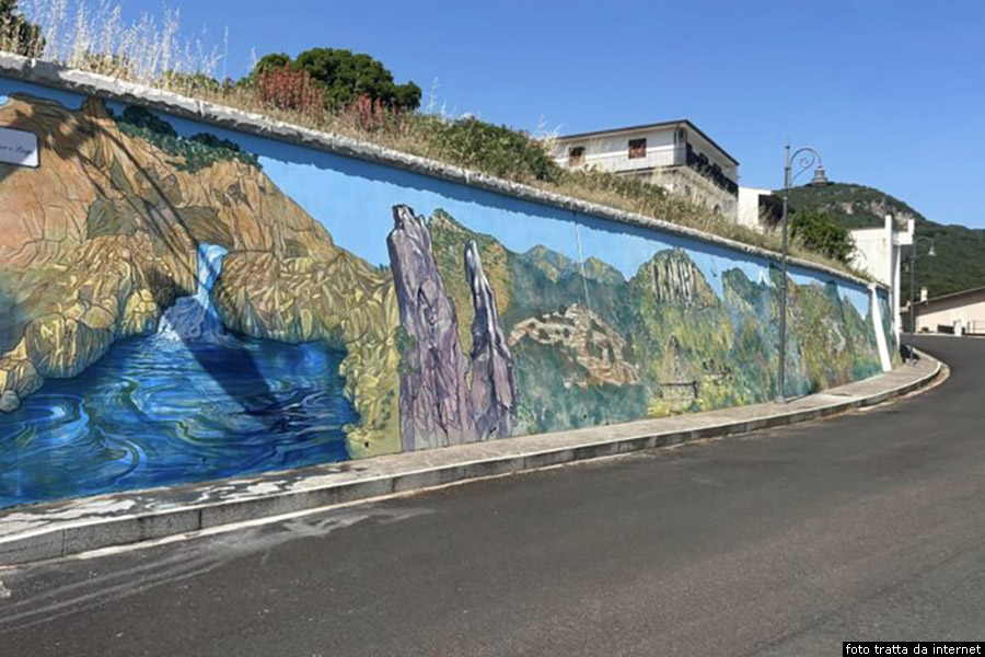 Prima di uscire dall'abitato vediamo il più grande murale della Sardegna