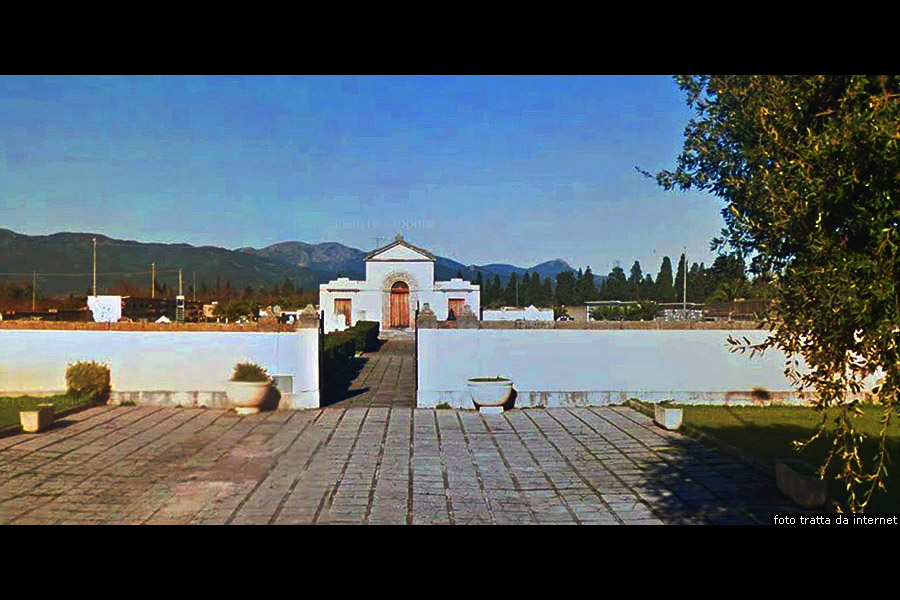 Il Cimitero di Vallermosa Entriamo all’interno dell’abitato di Vallermosa provenendo da Samassi con la SS293 di Giba che vi arriva da nord est, e che, all’interno dell’abitato, assumerà il nome di via Roma. Percorsi settecento metri dal cartello segnaletico che indica l’arrivo nel paese, ancora nella sua periferia nord orientale, troviamo, alla destra della strada, il muro di cinta e l’ingresso del Cimitero di Vallermosa.