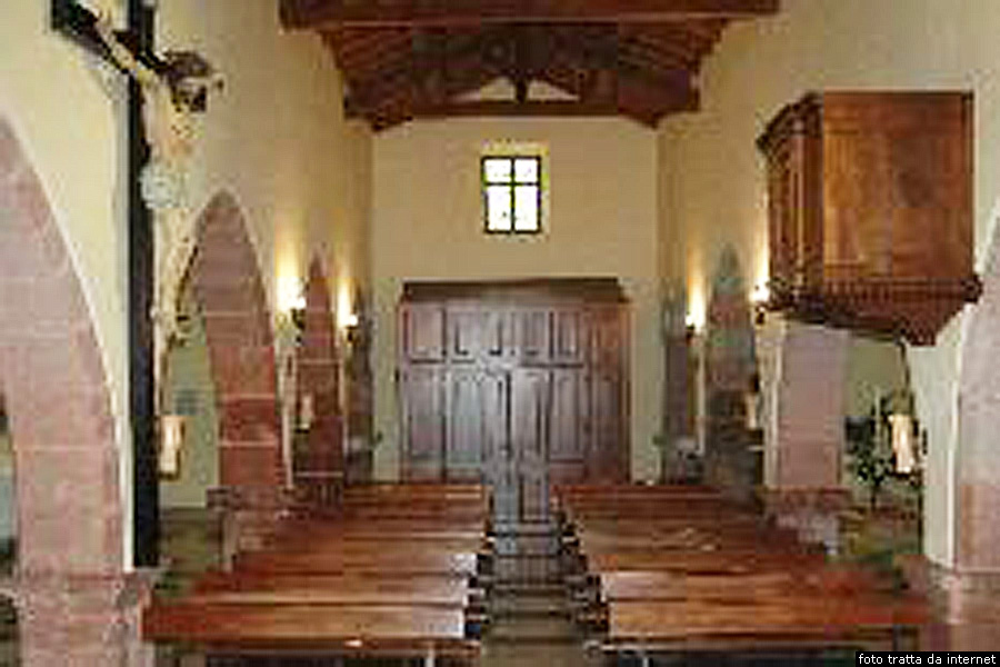 La facciata della chiesa presenta un portale centrale poggiantesu un architrave, con un arco leggermente sollevato sovrastato da un rosone di gusto gotico. Il terminale orizzontale è coronato da merli, da una croce centrale e da una torretta campanaria. L’interno è costituito da una unica navata, ma può essere visto come l’insieme di due parti, delle quali la prima, intervallata da tre archi in trachite a tutto sesto, ha il tetto ligneo e ricorda lo schema costruttivo gotico, mentre la seconda è costituita da una volta a botte che contiene una nicchia, la quale fungeva originariamente da altare. All’interno è presente un bell’altare ligneo aggiunto in epoca successiva. La chiesa ha subito recentemente dei lavori di restauro delle strutture murarie. Durante la fase dei lavori di restauro è stata posta in luce, al centro della navata, una sepoltura intatta, della quale la tomba si trova a soli una trentina di centimetri al di sotto dell’attuale pavimento della chiesa.